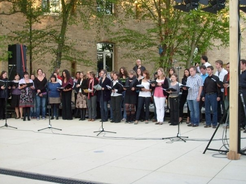 Am Sonntag, den 23. Mai, tritt der Germersheimer Universitäts-Chor „The KHS-Anglophones“ im Rahmen der Ausstellung „Heimat finden in Germersheim“ um 17 Uhr im verwunschenen Torgarten des Weißenburger Tors auf.
