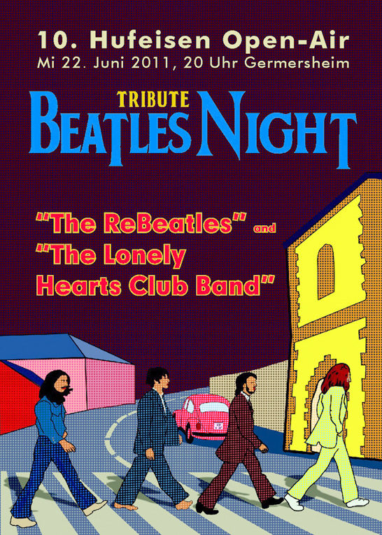 10 Jahre Hufeisen Open-Air, 50 Jahre Beatles – da wird das Hufeisen Open-Air natürlich zur Beatles-Night. Und weil es zwei tolle Coverbands gibt, geht es gleich um 20.00 Uhr los. Für unsere Fans, ohne die wir nichts zu feiern hätten, ist diesmal also pünktliches Erscheinen angesagt! Einlass 18:30. Vorverkauf 15 € zzgl. Vorverkaufsgebühren, Abendkasse 19,50 €.